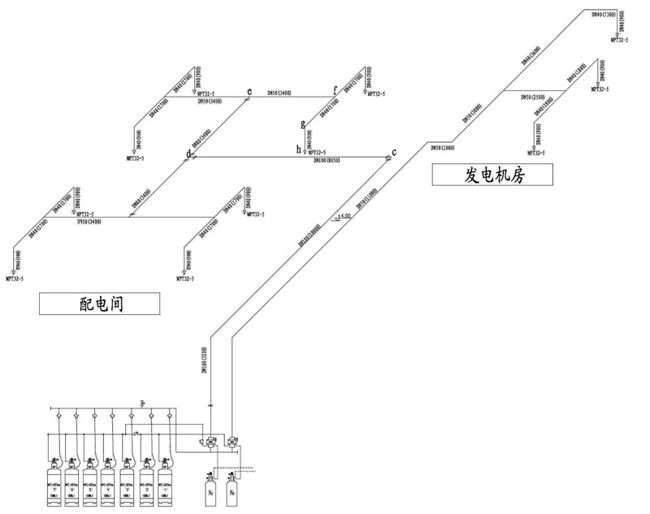 該工程為某商業(yè)大廈地下二層氣體消防工程,首先明確建筑物本身的建筑特點(diǎn)和功能特點(diǎn),了解該建筑地下二層的防火工程設(shè)計(jì)中其它專業(yè)的設(shè)施及對(duì)消防專業(yè)的設(shè)計(jì)要求,然后根據(jù)有關(guān)規(guī)范對(duì)建筑物定性,確定系統(tǒng)的總體結(jié)構(gòu)。按照氣體滅火設(shè)計(jì)規(guī)范,該樓層配電房、發(fā)電機(jī)房、油庫(kù)不能應(yīng)用水噴淋滅火系統(tǒng),因此選用氣體滅火系統(tǒng)方案,以確保消防滅火的可靠性
