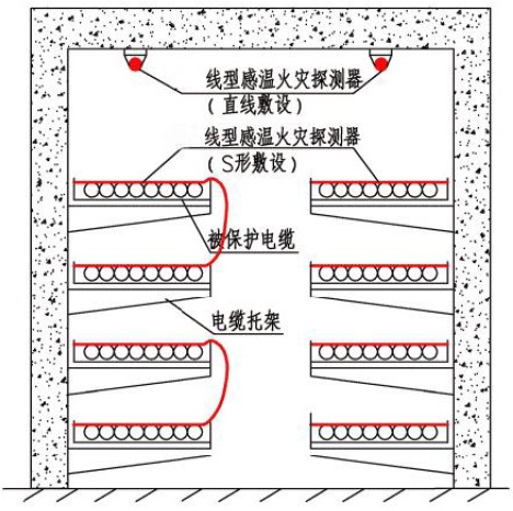 圖5. 線型感溫火災(zāi)探測器在電纜隧道內(nèi)敷設(shè)示意圖