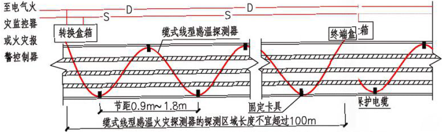 圖6.線型感溫火災(zāi)探測器在電纜接頭處敷設(shè)的示意圖