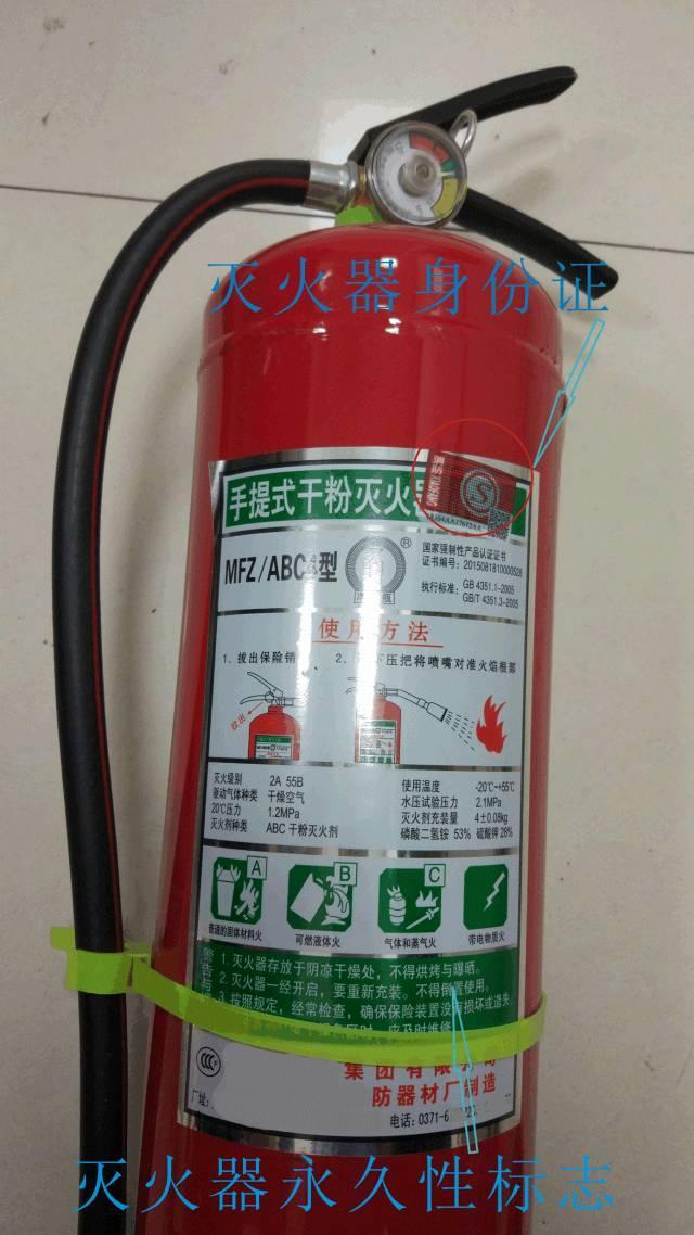 1、干粉滅火器瓶體法定報(bào)廢年限為10年:可通過壓力表上出廠日期或瓶體有無身份證判定滅火器瓶體出廠日期(自2008年1月1日起,防火門、滅火器、消防應(yīng)急燈三類產(chǎn)品全面實(shí)行消防產(chǎn)品身份證制度)(如下圖);